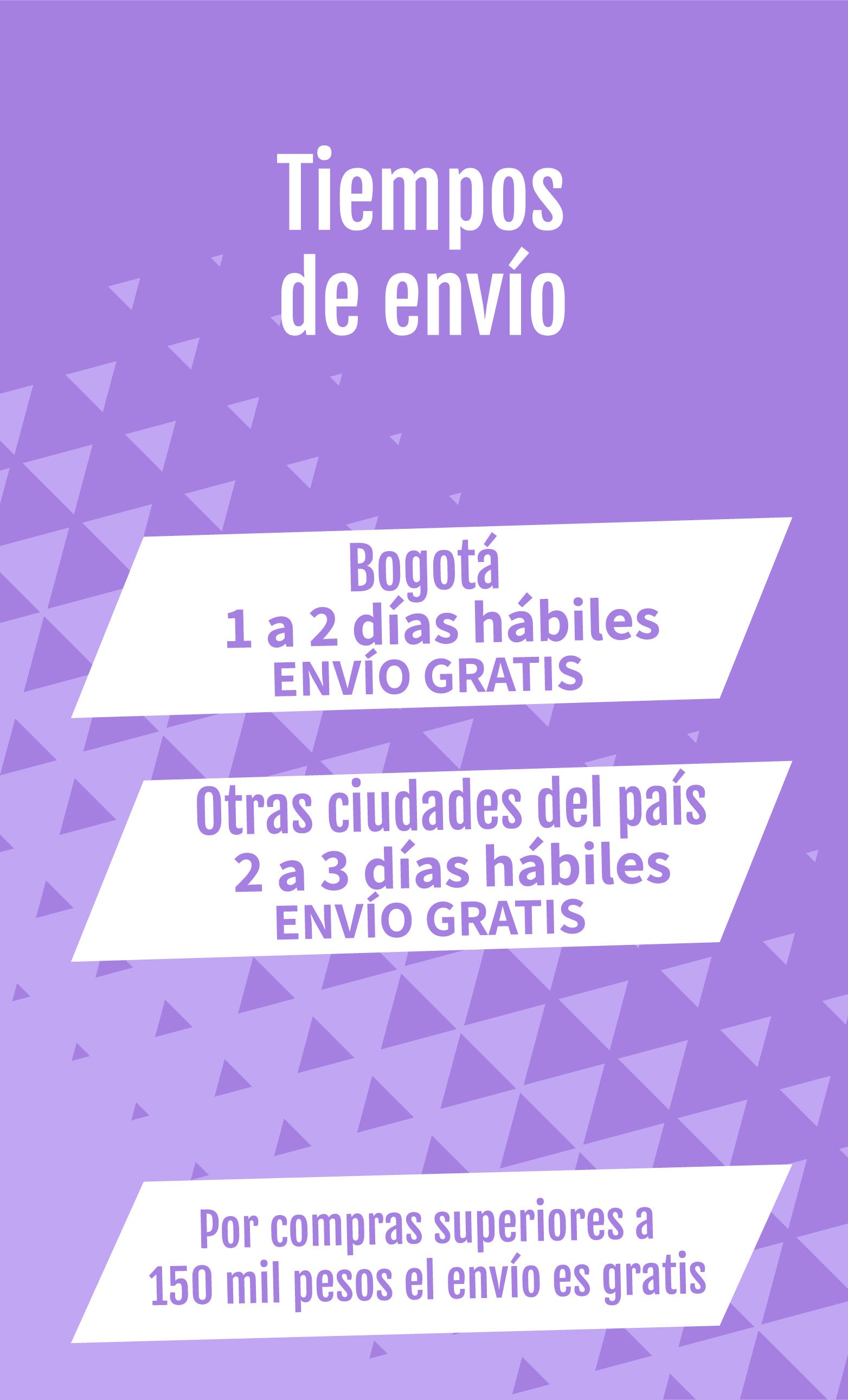 Envíos gratis por compras superiores a $150.000